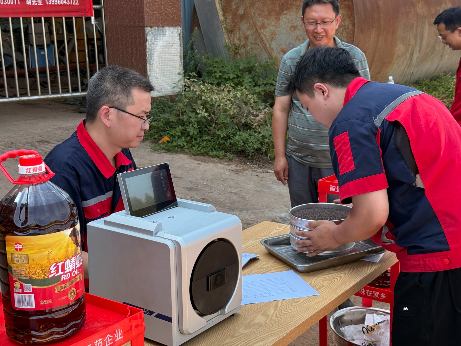 公司建立了“優(yōu)質優(yōu)價”收購體系,以“慶油3號”為例,對于符合收購條件的菜籽,價格較普通菜籽上浮10%,且菜籽含油率每增加1%價格順加,實現(xiàn)綜合收購價較市場價高出200元/噸。在收購現(xiàn)場,公司員工通過近紅外光譜儀現(xiàn)場快速檢測水分、含油率等指標,實現(xiàn)“田間直收+廠區(qū)掛牌”雙軌收購,5月20日至8月15日期間分階段收購,確保應收盡收。